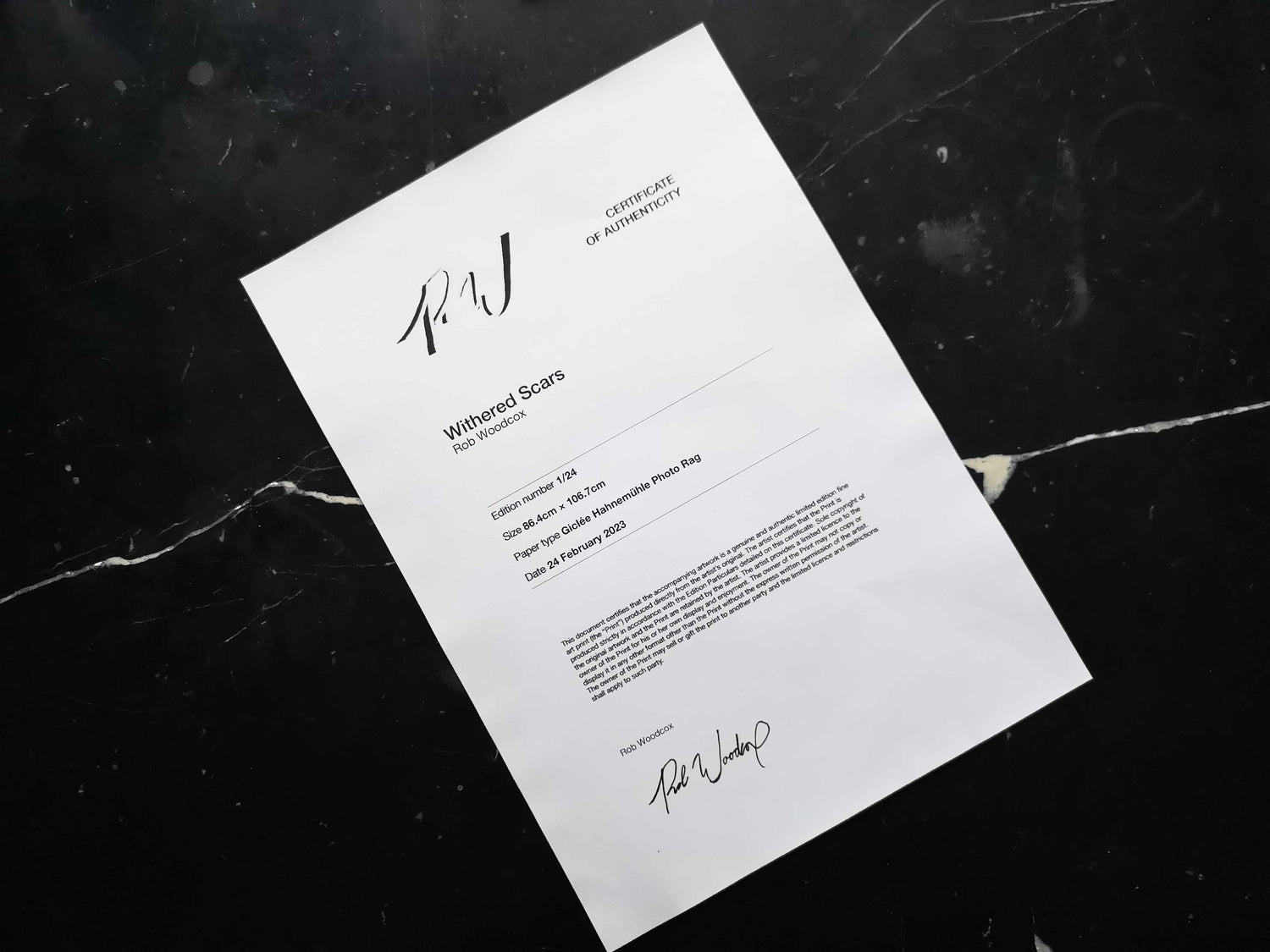 Presented on acid-free, archival cotton Photo Rag Giclée paper with a chalky smooth finish, from Hahnemühle the world’s oldest mill who have been producing fine art papers for more than 500 years. Guaranteed archival life of 100+ years.